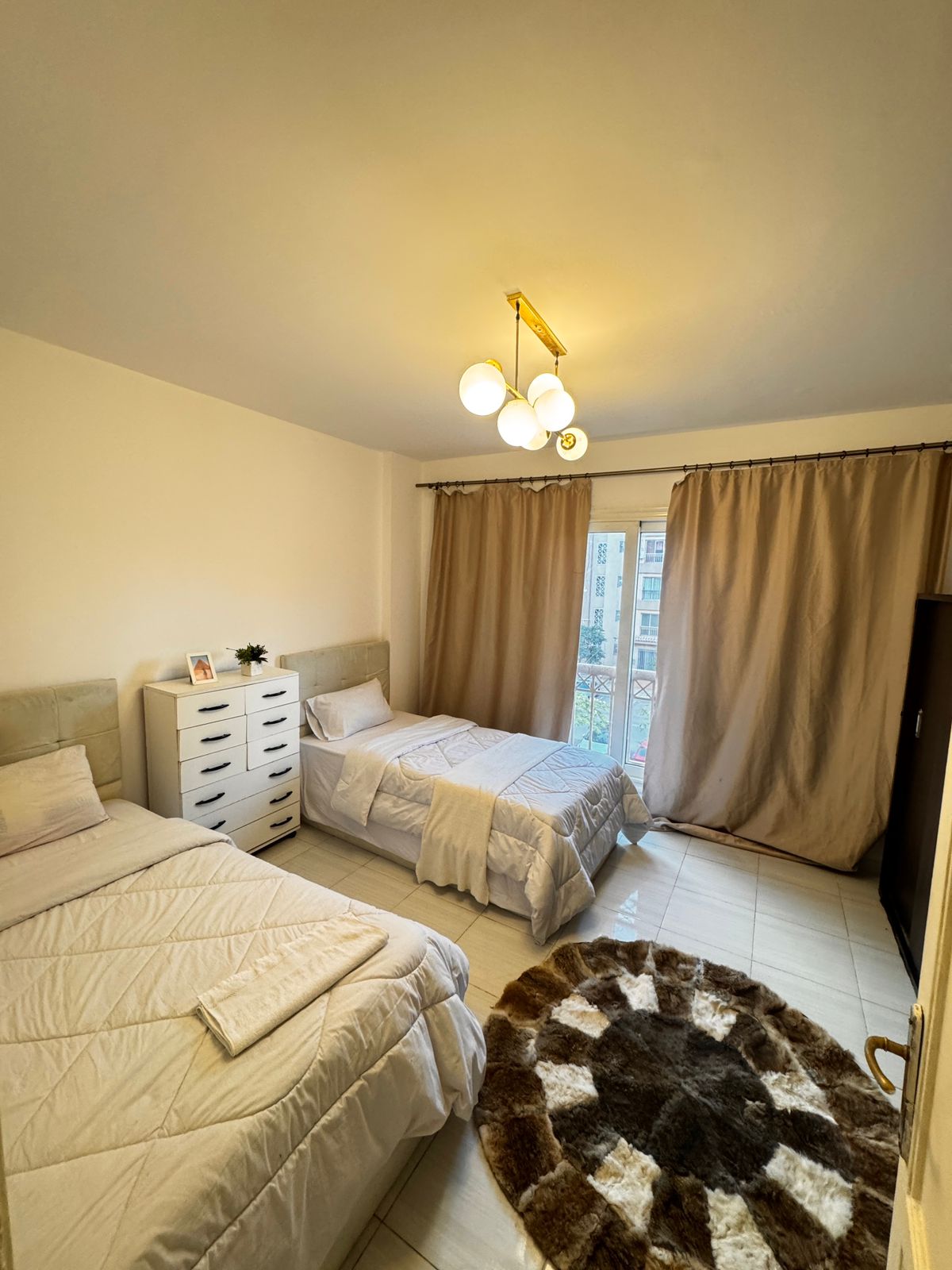 شقة في مدينتي 107 م2 للإيجار مفروش بحري على حديقة صغيرة 25,000 ج