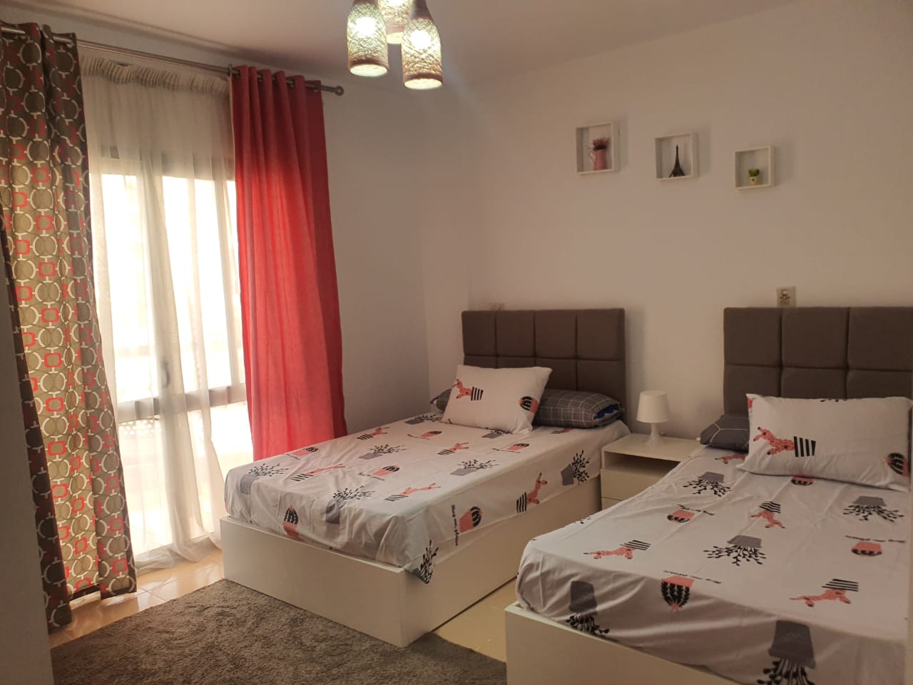 شقة في الرحاب بالمرحلة التاسعة النموذج ( C ) المساحة 110 متر2 بحري تطل على حديقة تشمل 3 نوم 2 حمام 2 بلكونة بالطابق الأرضي تشطيب الشركة للإيجار قانون جديد 14,000 جنيه و التشطيب به تعديلات