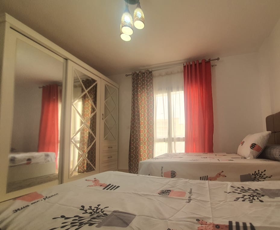 شقة في الرحاب بالمرحلة الثامنة النموذج ( B ) المساحة 99 متر2 تطل على تشمل 2 نوم 1 حمام 1 بلكونة بالطابق الأول تشطيب الشركة للإيجار مفروش 35,000 جنيه