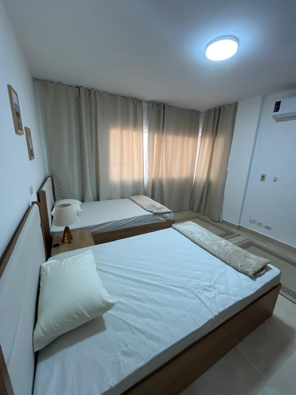 شقة في مدينتي بالمرحلة السادسة النموذج ( 22 ) المساحة 142 متر2 بحري و شرقي و غربي تطل على شارع و حديقة تشمل 3 نوم 1 حمام 2 بلكونة بالطابق الثاني تشطيب الشركة للإيجار قانون جديد 5,500 جنيه و قريبة من اولاد رجب و بها غار و سخان غار