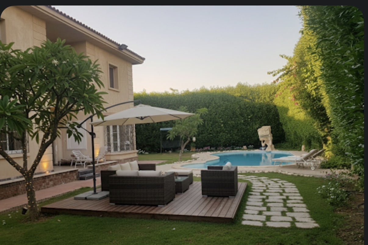 فيلا منفصلة في مدينتي بالمرحلة الثانية النموذج ( E ) المساحة 890 متر2 مساحة المباني 400 متر2 بحري تطل على حديقة كبيرة تشمل 4 نوم 5 حمام 0 بلكونة تشطيب خاص إستلام فوري للبيع كاش 55,000,000 جنيه و بها حمام سباحة