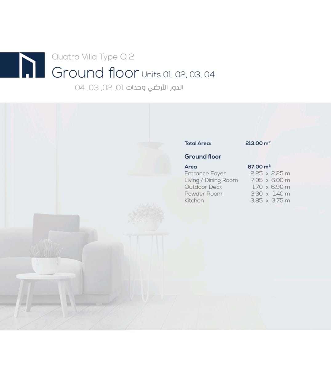 فيلا رباعية في نور بالمرحلة الأولى النموذج ( Q1 ) المساحة 218 متر2 مساحة المباني 195 متر2 تطل على تشمل 3 نوم 3 حمام 3 بلكونة بدون تشطيب للبيع تقسيط على 10 سنة بمقدم 2,828,000 جنيه