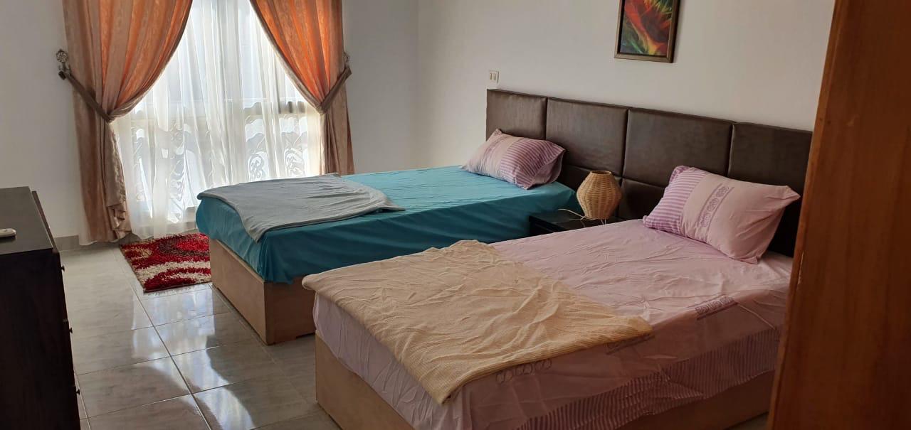 شقة في الرحاب بالمرحلة الأولى النموذج ( Z ) المساحة 136 متر2 بحري تطل على حديقة تشمل 3 نوم 3 حمام 0 بلكونة بالطابق الأرضي تشطيب الشركة للإيجار مفروش 7,000 جنيه